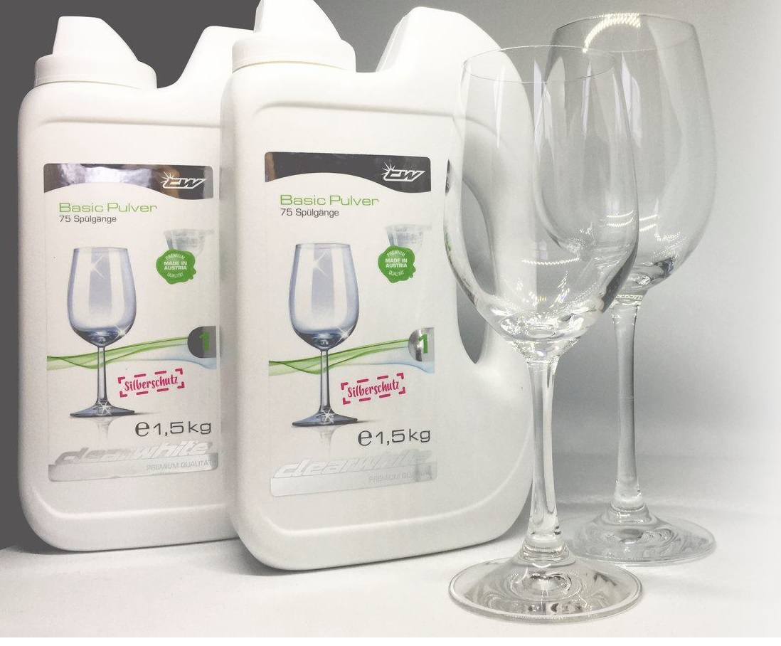 Linija Clearwhite Basic z novo encimsko tehnologijo vsebuje več encimov, ki so močnejši od tistih v običajnih čistilih. Čisti in odstranjuje ostanke hrane učinkovito in zanesljivo, plemenito jeklo pa kar zasije. Če istočasno uporabite še sredstvo za čiščenje pomivalnega stroja, bo po vsakem pomivanju brezhibno čist tudi vaš stroj. Encimi in aktivni kisik v izdelkih Clearwhite se sprostijo z zamikom in skupaj s sredstvom za sijaj in soljo poskrbijo za brezhibno čisto posodo in briljanten lesk kozarcev.